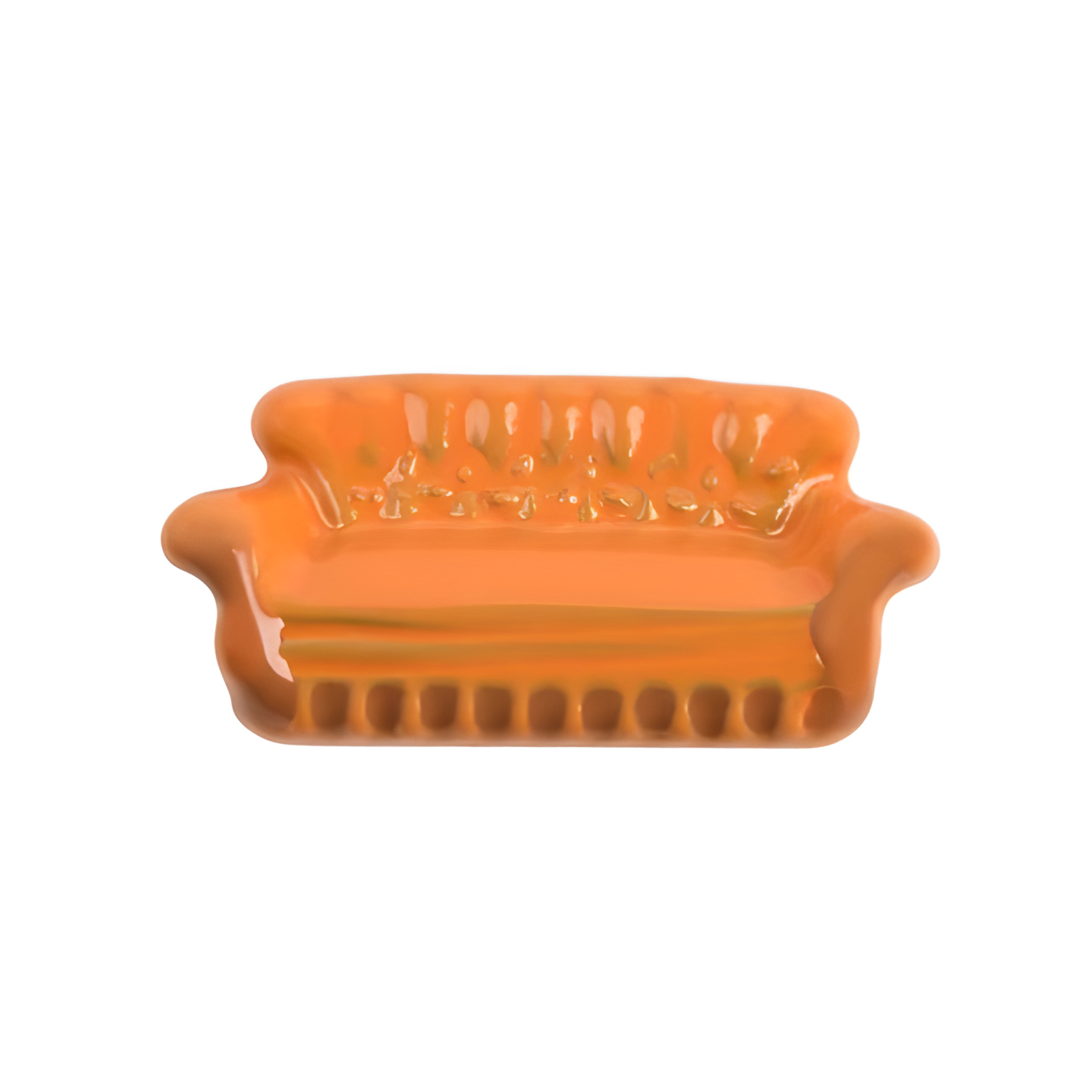 Inspirado no icônico sofá laranja com almofadas de veludo.